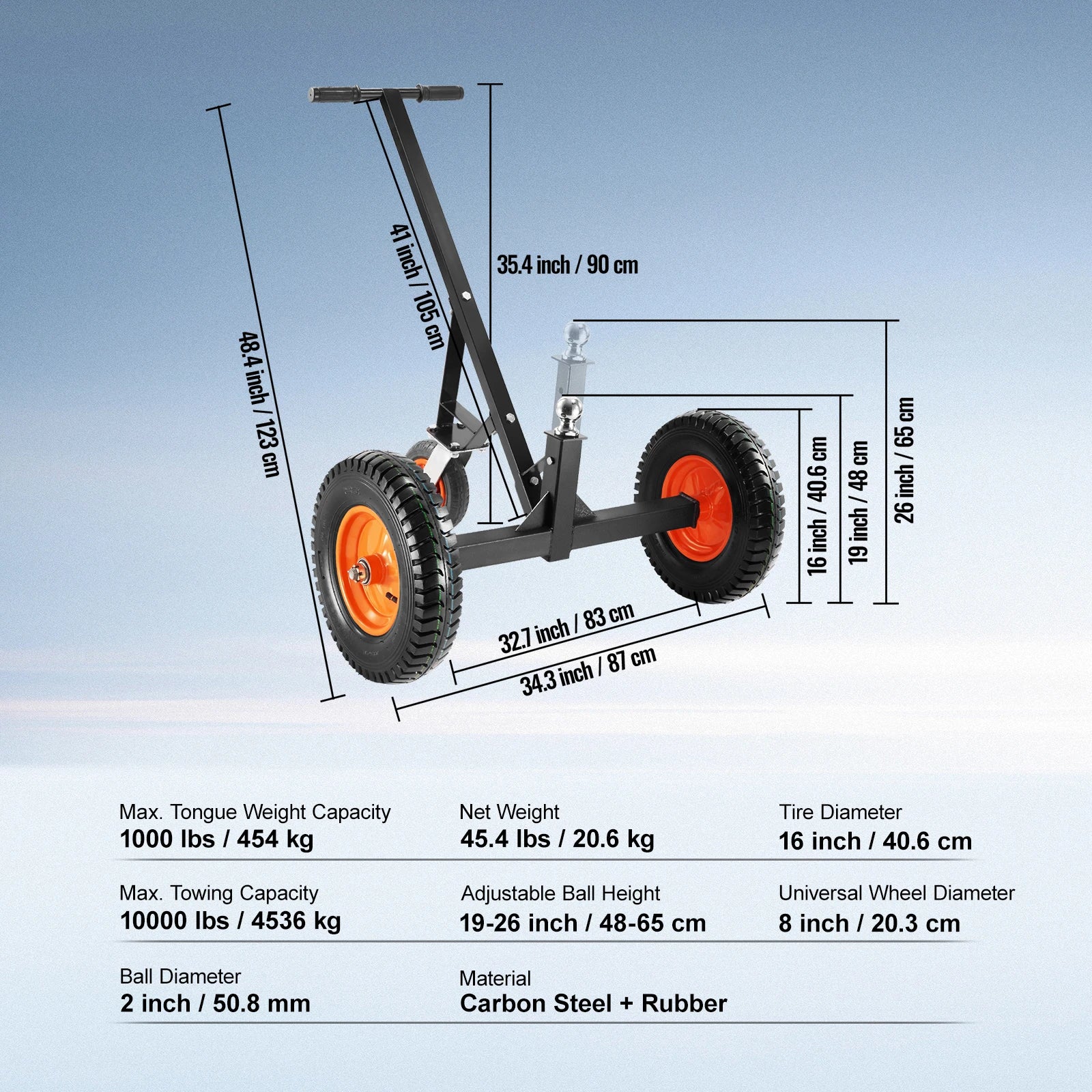 1000lbs Tongue Adjustable Trailer Dolly Carbon Steel