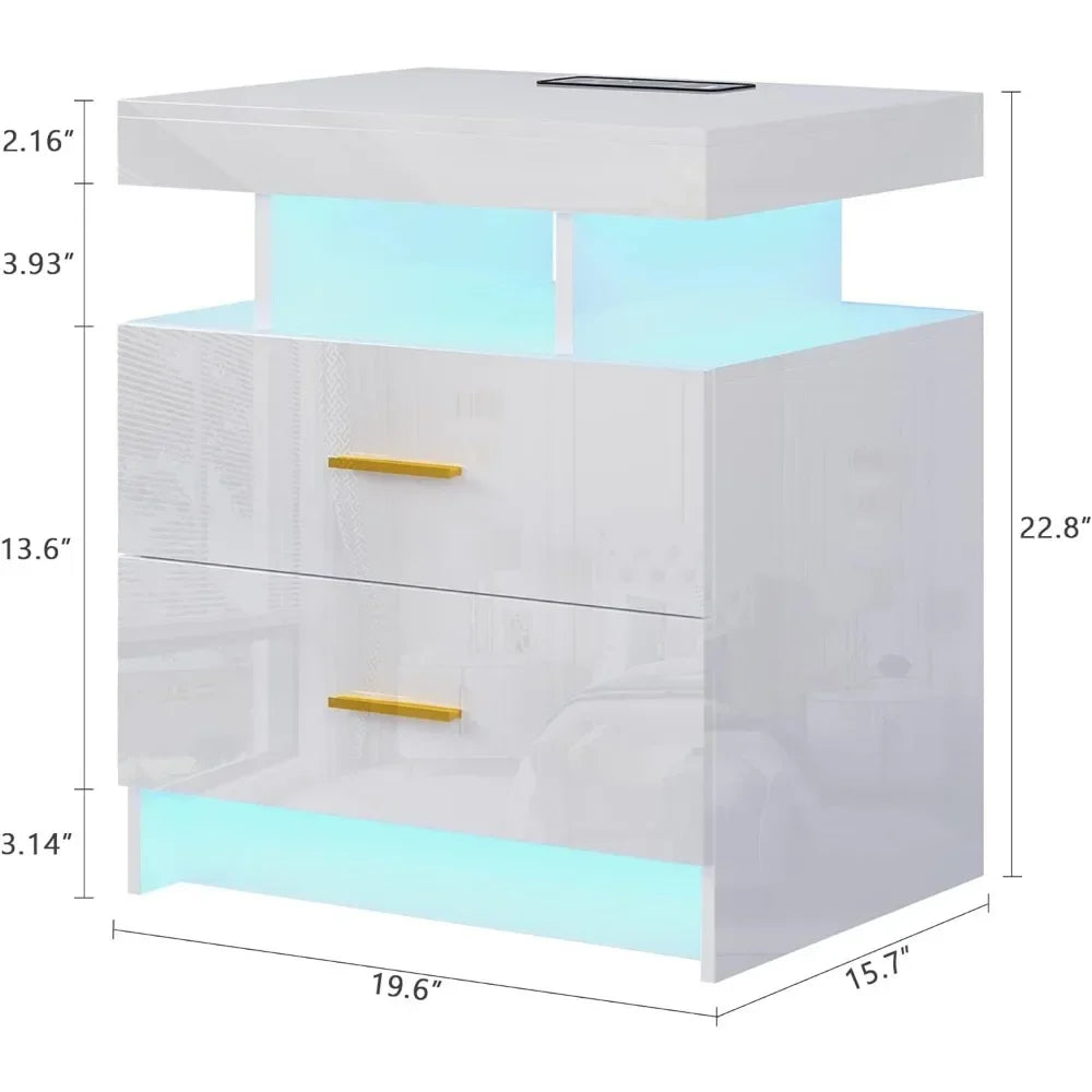 LED Nightstand Wireless Charging USB Ports , 3 Color Adjustable Brightness